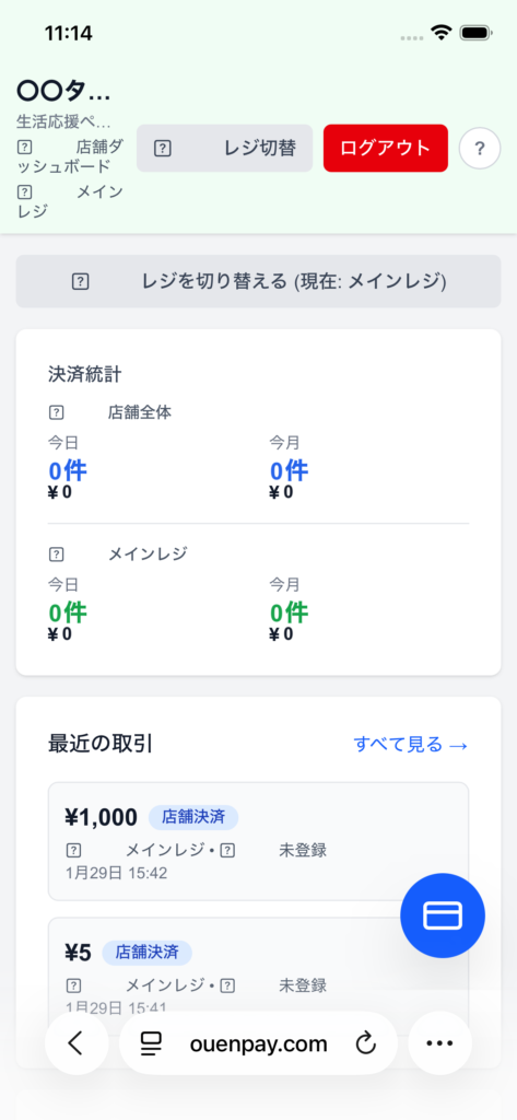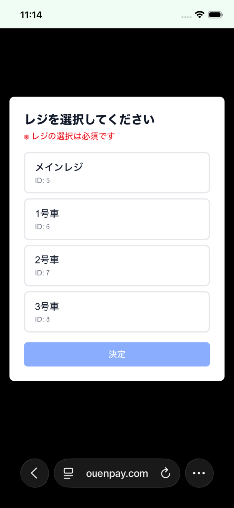💡 ヒント: 一度選択したレジは記憶されるため、次回からは選択画面は表示されません。