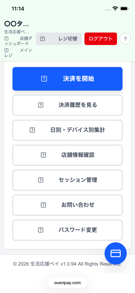 💡 ヒント: 決済処理が終わったら必ずログアウトしてください。長時間操作がない場合は自動的にログアウトされます。